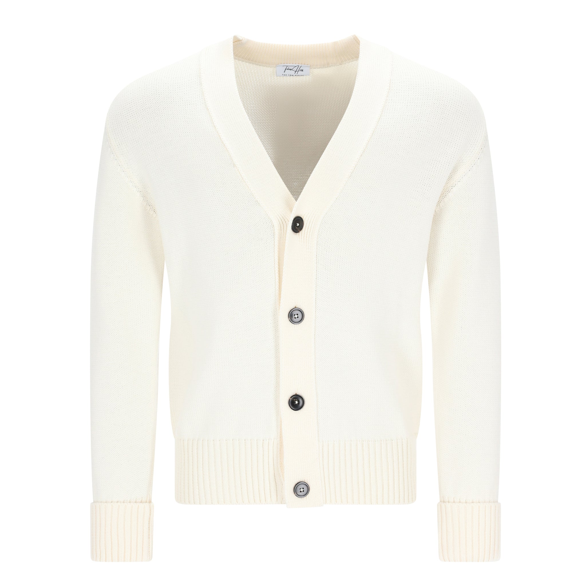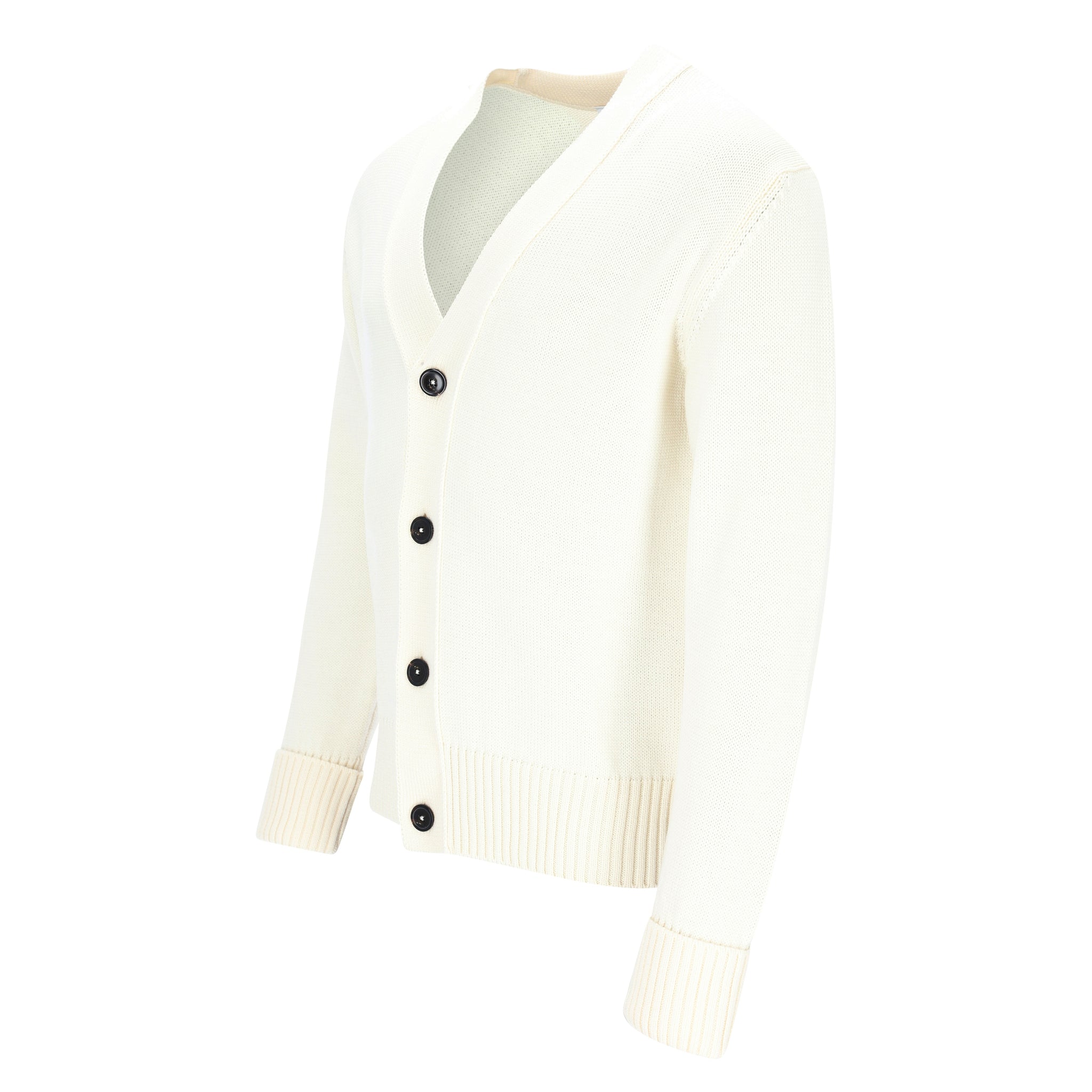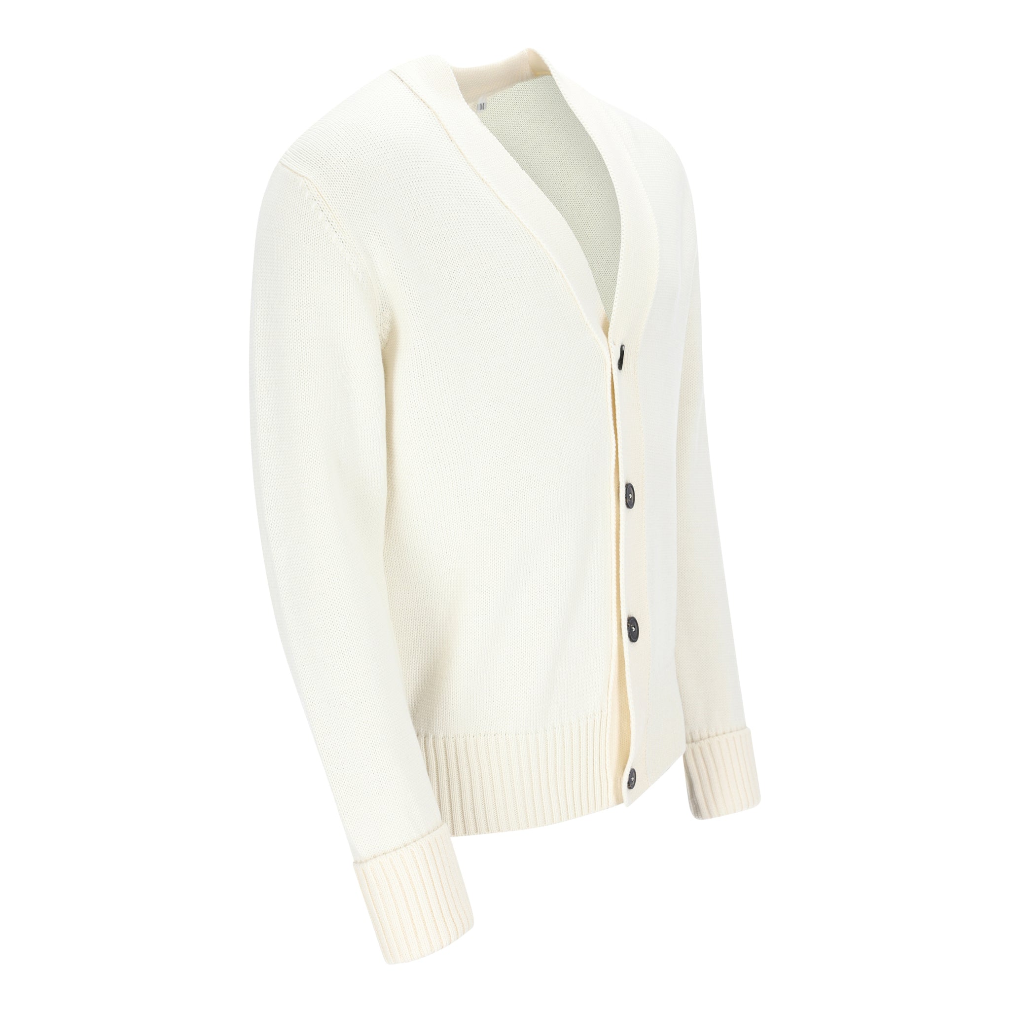 Der V-Ausschnitt wirkt maskulin und schafft eine klare Silhouette. Der V-Ausschnitt wirkt maskulin und schafft eine klare Silhouette. Er schafft Raum für Layering und verleiht dem Cardigan eine moderne, elegante Linie. Die breite Knopfleiste unterstreicht den puristischen Charakter und sorgt für eine aufgeräumte Optik.